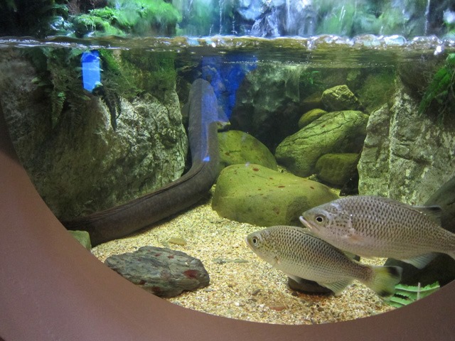 這裡還有些特色展區,如此區就是展示在沒有陽光照射地帶的洞穴魚。