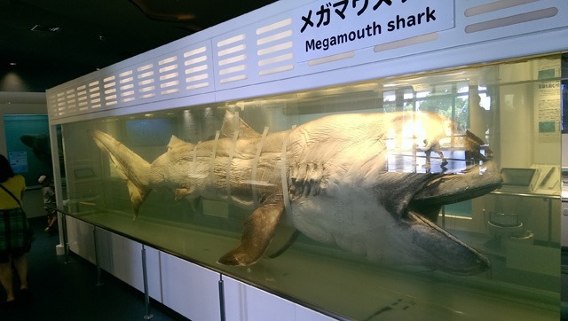 這隻像穿了日本武士甲冑的魚也很討簡單喜歡!另外就是有兩隻(還是三隻?)活動力超強的海豚。(為什麼簡單反而對這幾隻超大的鯊魚反而沒那麼喜歡,其實看著牠們長的這麼大,卻只能不斷的在這個小小的水族箱繞圈圈,那種感覺其實蠻難過的!)