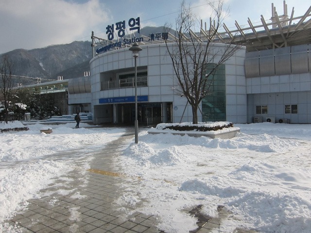 怎麼說呢?觀光巴士的票價五千元,可以當日無限次上下車;公車只要一千多元,來回加起來也只要觀光巴士的一半,如果你只要到一個點似乎觀光巴士並不划算,也就是因為這樣,所以簡單才會在雪地裡從地鐵站走到公車站,然後在公車站碰的一鼻子灰,為的就是省兩千多塊韓元,但各位想想,兩千多韓元也不過就是一百塊台幣不到,到底有什麼好省的!?更何況,如果你是第一次到韓國,交通費根本有人會贊助,省這個錢是絕對沒有必要的(詳情後幾天會說明)!所以你只要在清平站下地鐵後,就在那裡等觀光巴士即可!